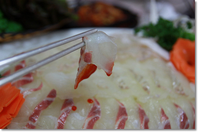 드디어 회 등장~~~~~ 도톰하니 썰어서 (꿀꺽)~~~ ㅋ