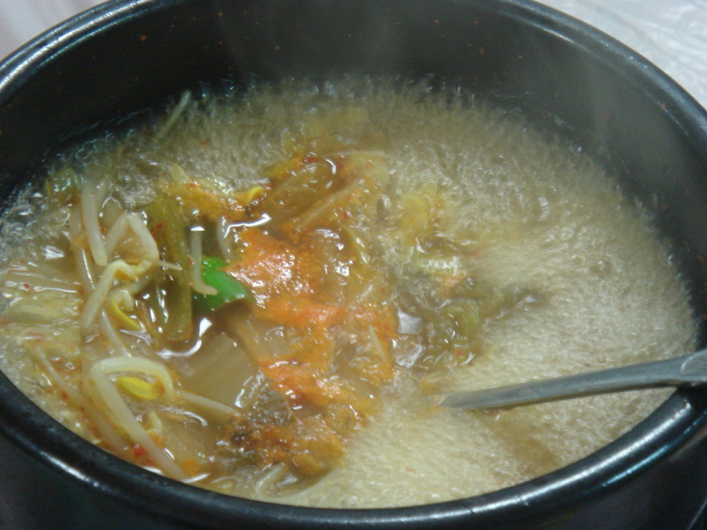 뚝배기에 김치콩나물국도 팔팔 끓여주시고요..