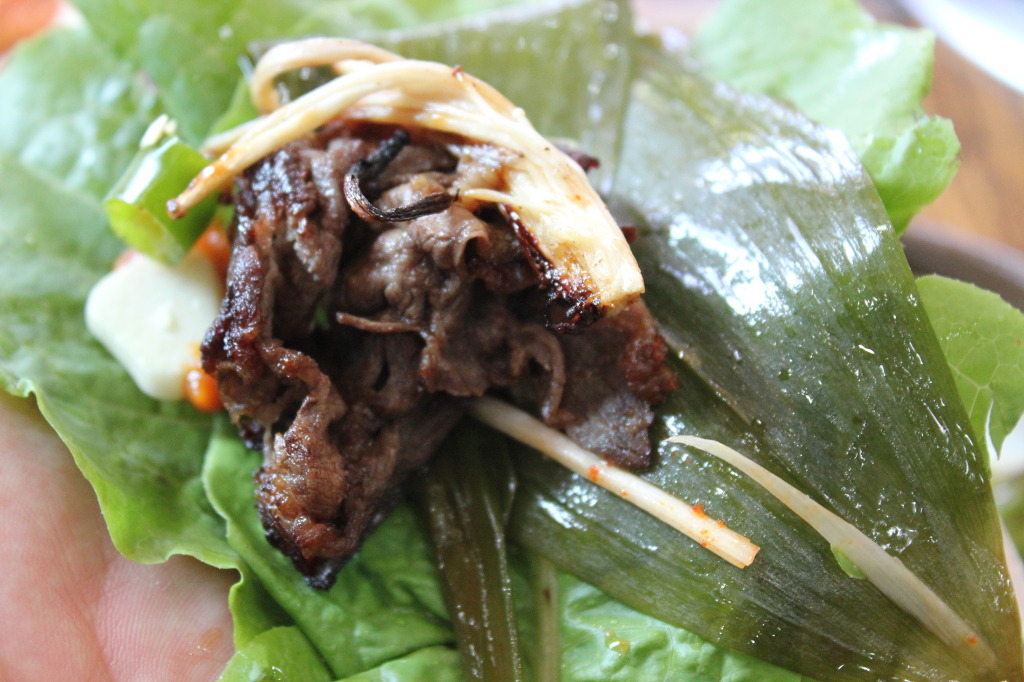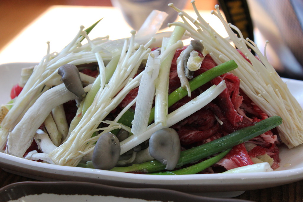 파채 와 버섯,야채 그리고 생불고기 쌈