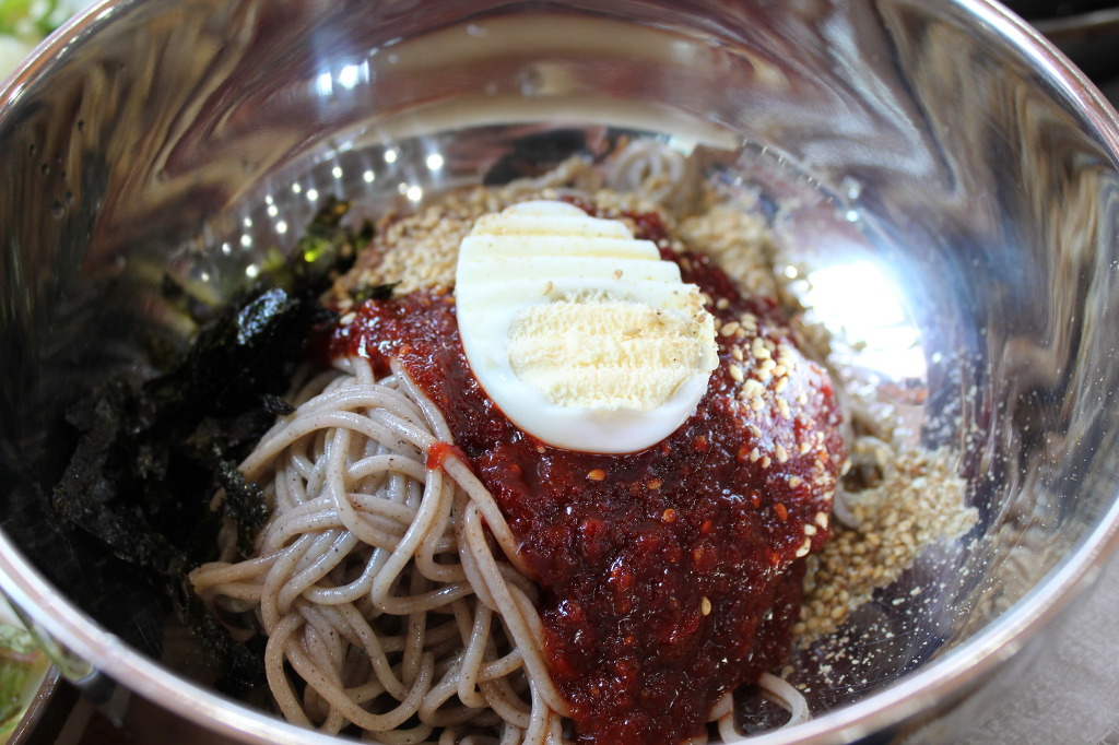 시원한 냉 육수의 막국수 입니다.