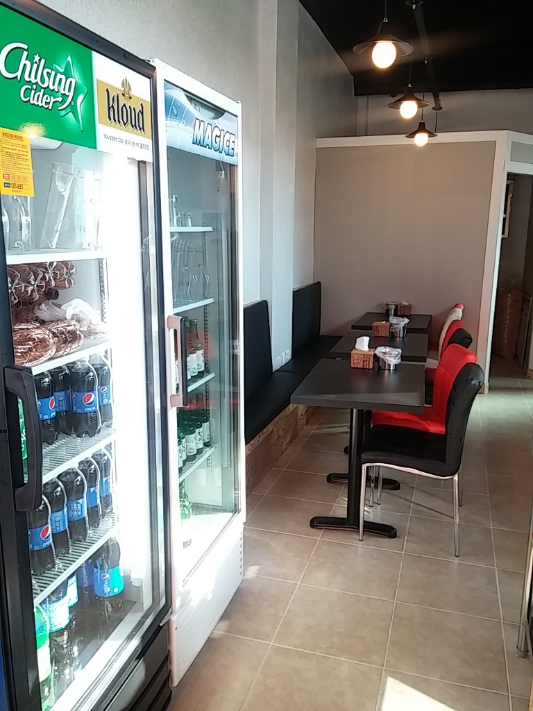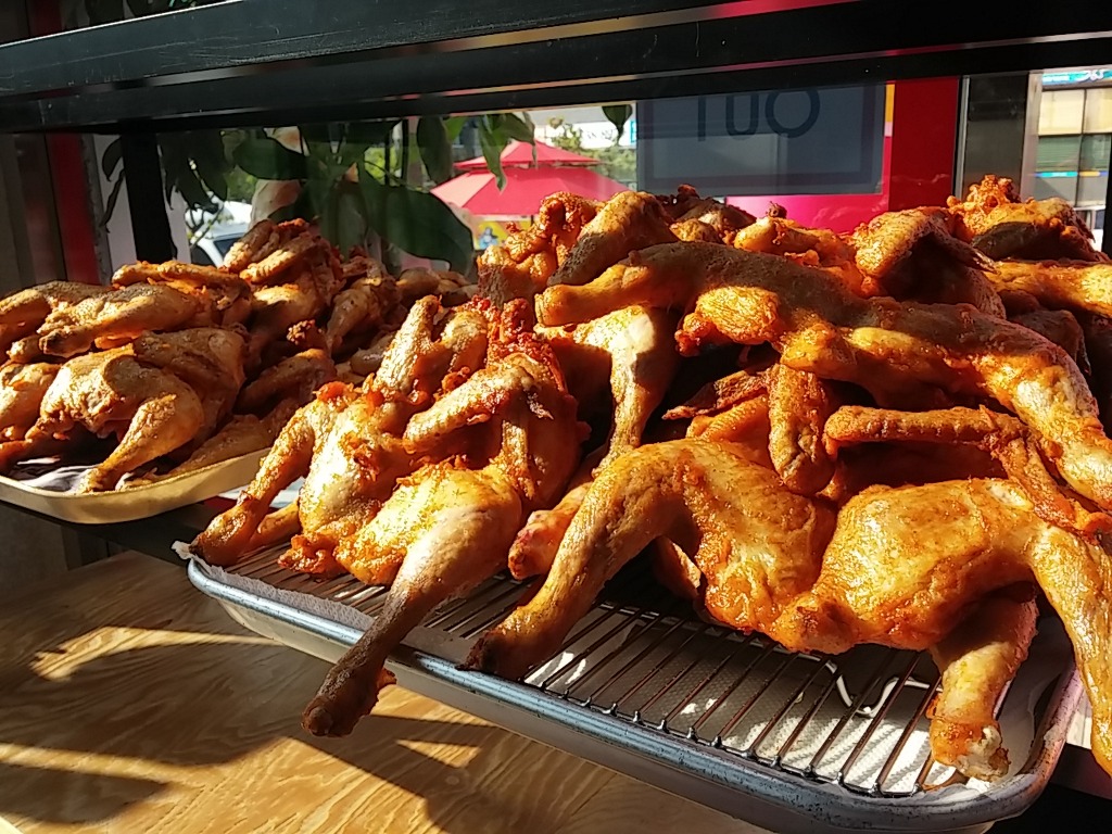 양념이 묻어 있지 않은 통닭들을 진열해 둘 수 있다는건 기름 관리에 그만큼