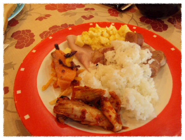 2011년 1월2일 겨울가족여행 둘째날 아침 경주교육문화회관 조식뷔페에서 먹은 음식입니다.