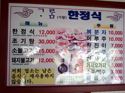 제 예전 기억으로는 옥정골 한정식이 10,000 원 이었던걸로 기억하는데