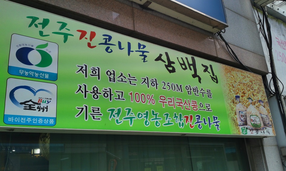 유일하게 국산콩으로 화학촉진제를 쓰지 않고 기른 콩나물을 사용한다고 하는데 ...