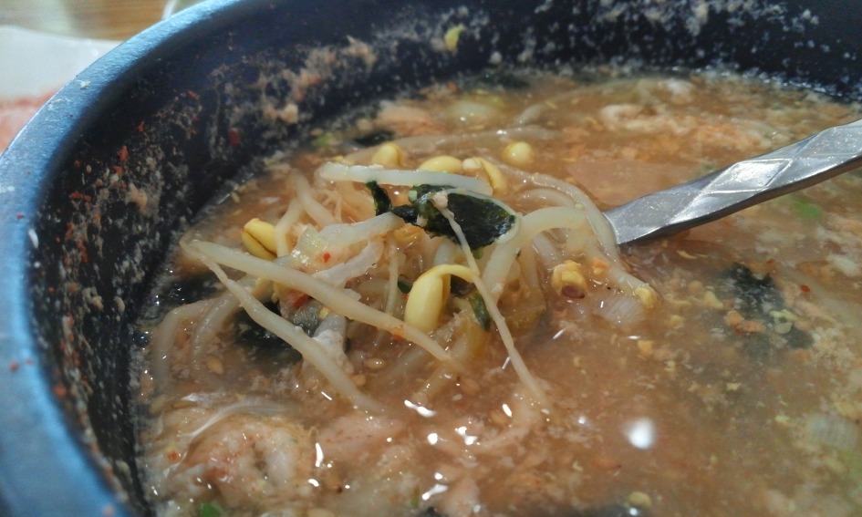 모처럼 맛난 콩나물 국밥이었습니다 .
