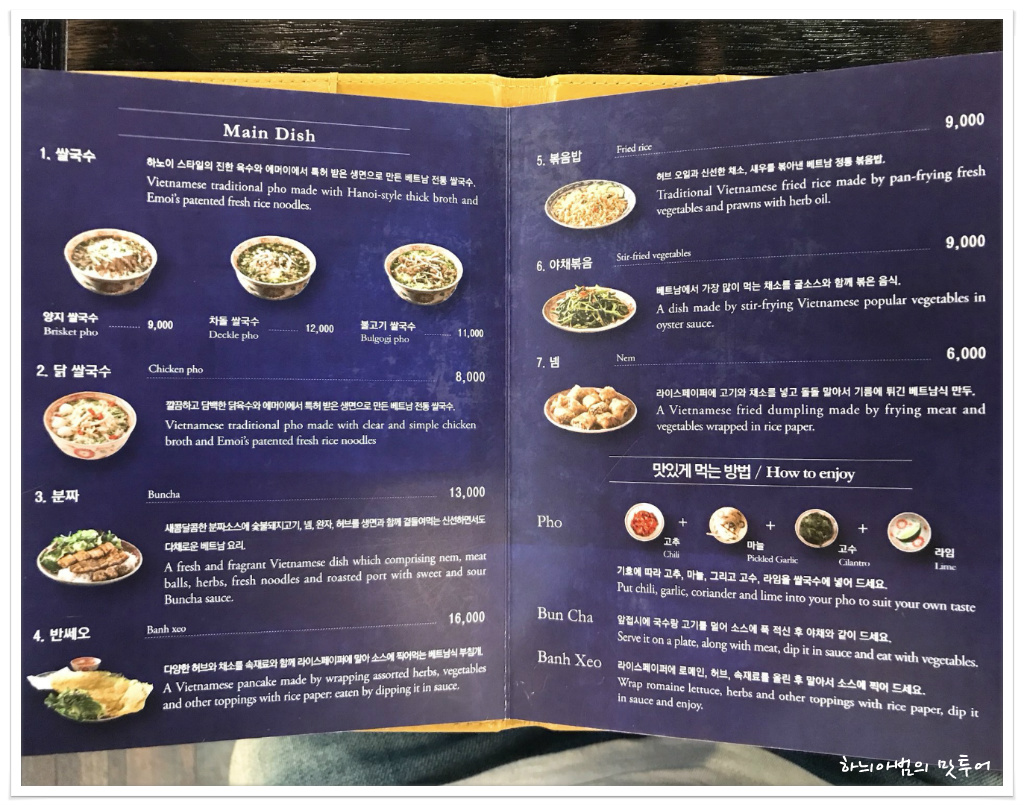 에머이에 대표 메뉴는 분짜와 양지쌀국수죠