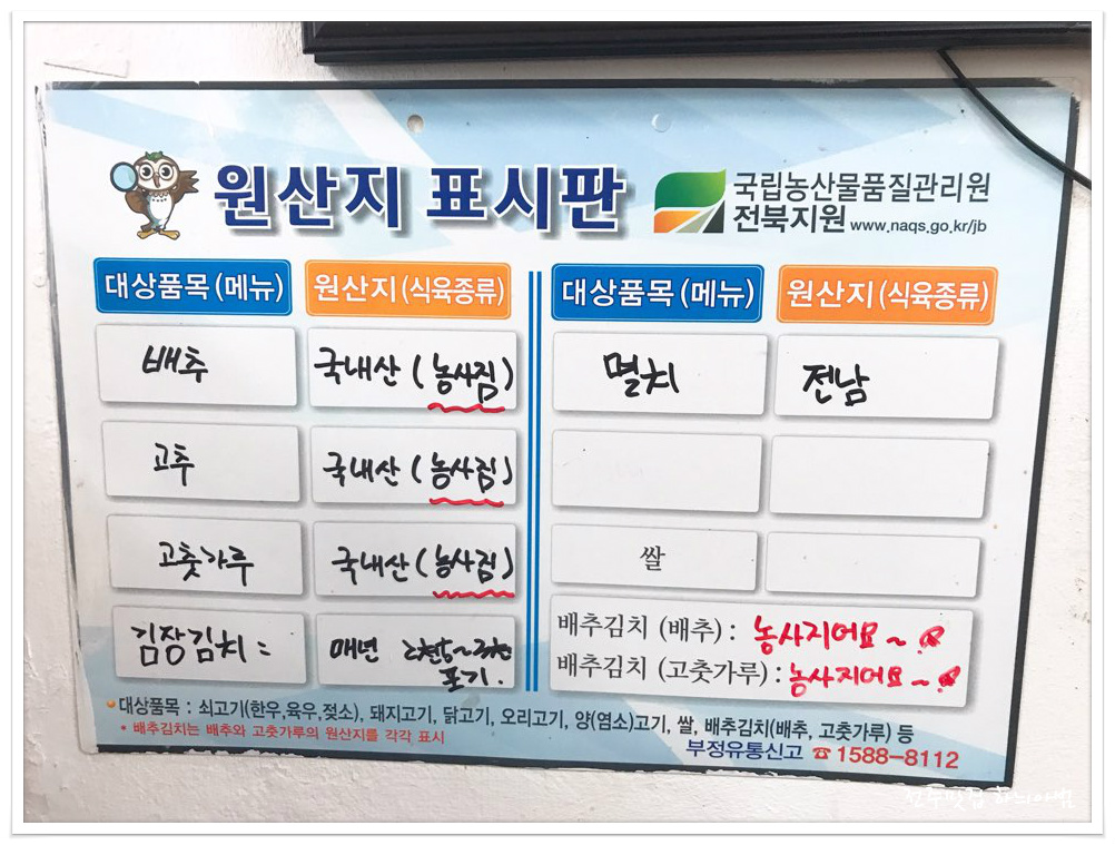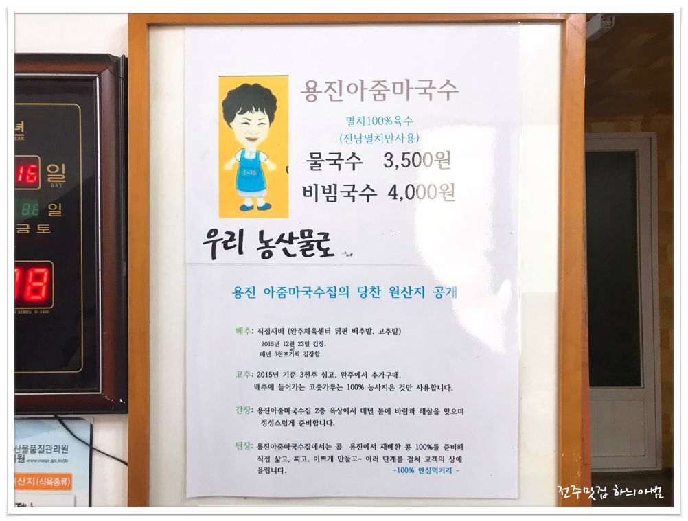 용진아줌마국수집 맘에 드는 점 모든 재료가 국산이고