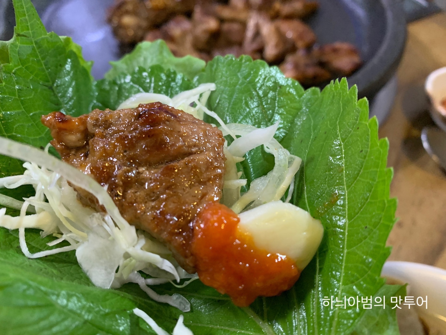 양념돼지갈비 한조각 먹으면