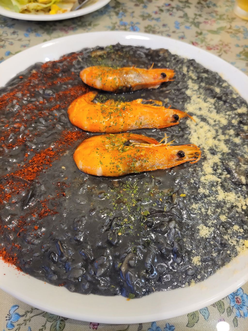 먹물새우치즈리조또 고춧가루가뿌려있어 덜느끼하고 새우구이도살짝매콤하니 맛도좀 색다른듯하면서 맛있네요~