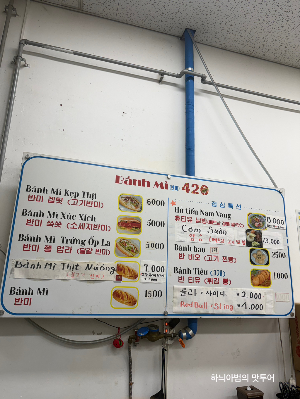 메뉴는 반미4종류에 쌀국수 베트남고기덮밥
