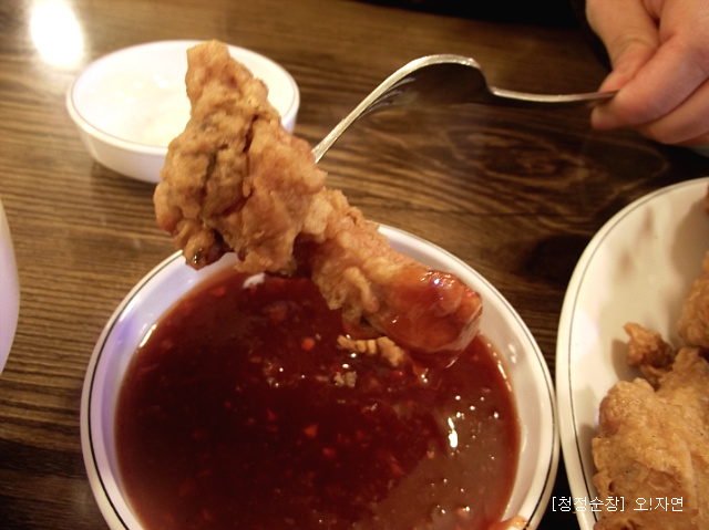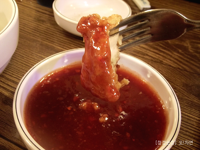 양념소스에...찍어서...한입~~~ ㅋㅋ 근데 소스는...직접만드시는게 아니라 어디서 사오시는듯......
