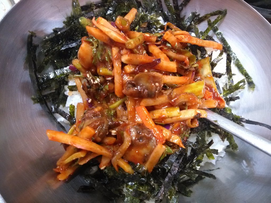 대접에 김가루넣고 꼬막회무침을 넣고 비벼먹으라 하셔서 그렇게 하니