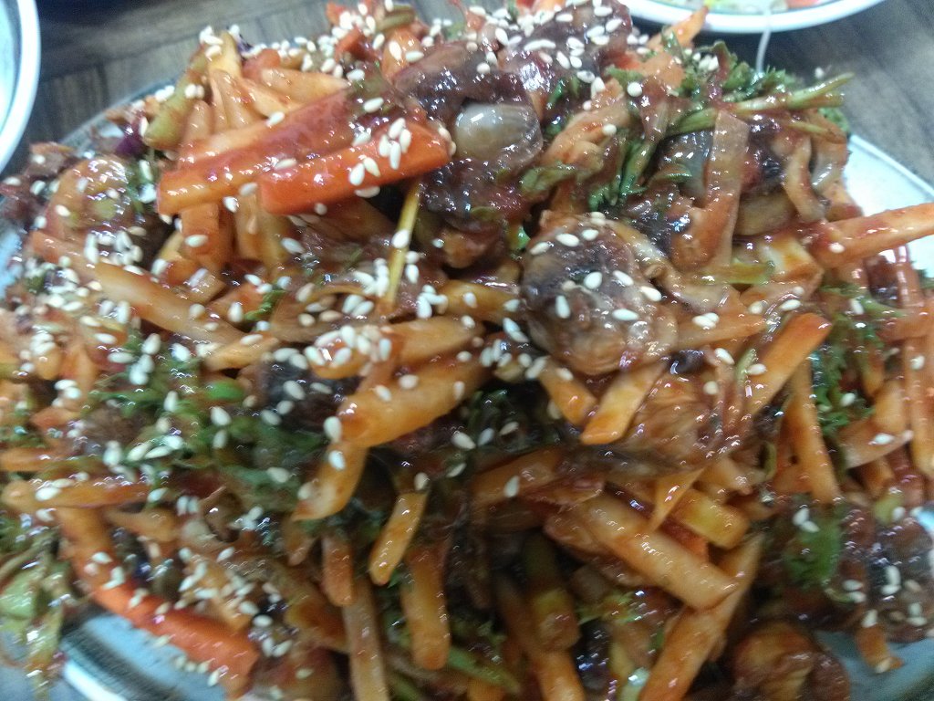 꼬막회무침은 새콤한 맛이 강하고 배가 가득 들어있어 씹히는 식감도 좋네요