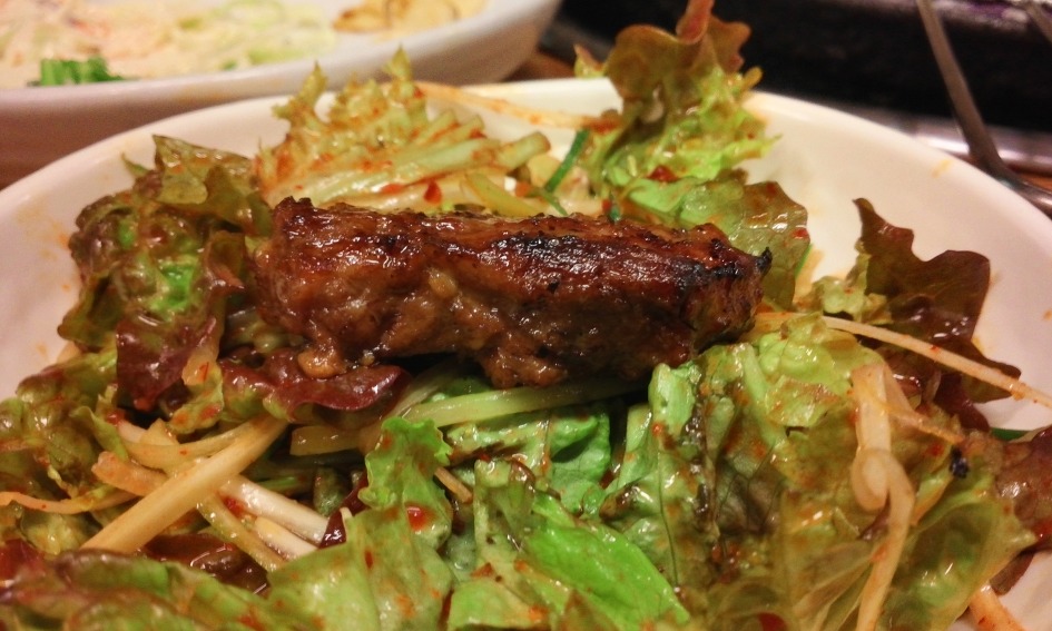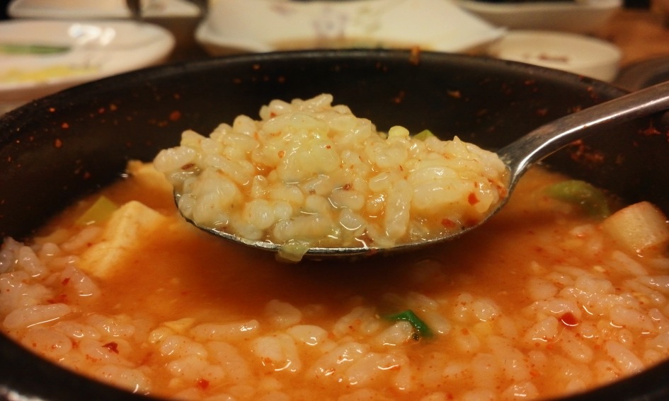 고기로 살짝 배를 채운후...된장찌개에 밥을 말아 드시면....