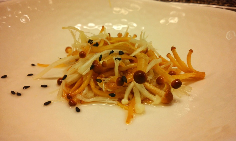 일반 팽이버섯과 나름 고가의 황금팽이버섯으로 살짝 데친후 꿀로 버무린...