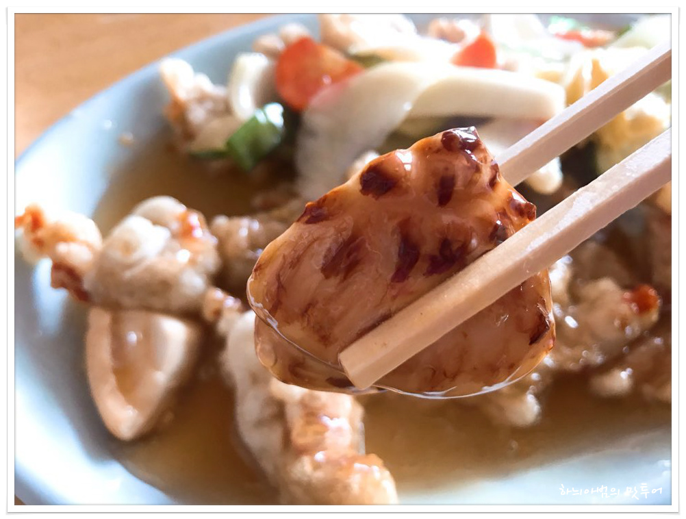 튀긴 후 바로 소스를 뿌려서인지 적당히 바삭하면서도