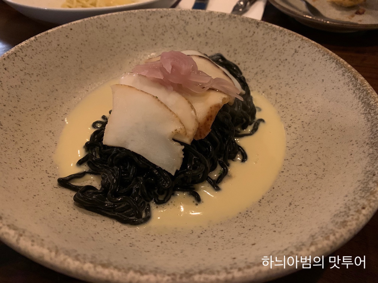 오징어 먹물 치타라 생면, 홍합, 소라,