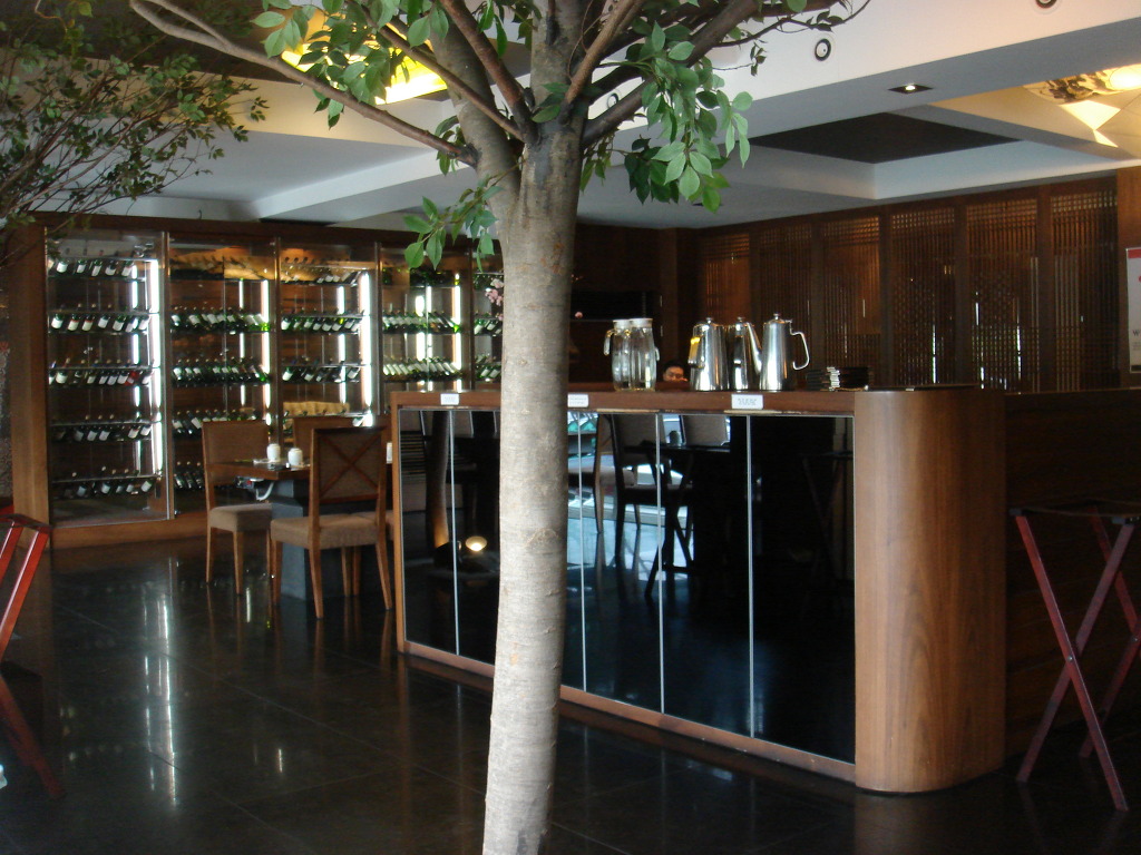 실내가 레스토랑같이 깔끔하더군요 앞쪽에 와인도 전시돼있구요..저희앞에는 실내인데도 나무한그루가 심어져있네요..