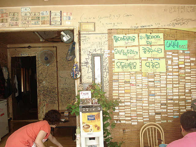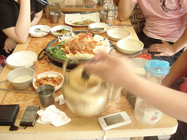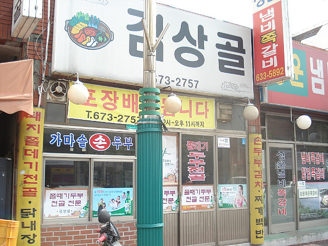 간만에 일이 있어 대전으로 일욜날 아침일찍 고고씽 후... 대전에 거주하고 있는 전 운영자 일러봐님을 불러내서 가게 된 검상골 쫄데기 두부전골집 전에 한번 가보고 그 맛에 반해 이번에도 역시 일차로 짱게에 탕슉으로 입가심 해주시고 가게 문 열 시간을 기다린후 후다닥 쳐들어가서 한 잔 꺽고 왔지요ㅋㅋ 허름한 가게 전관...이 동네서 가장 장사가 잘 된다고 하네요ㅋㅋ 뒤 늦게 나와서 열심히 준비중이신 이모님...성격이 짱이시네요 껍데기가 알맞게 붙어서 고소하니 맛있는 고기ㅋㅋ 이 전골이 만삼천원이라면 말이 되나요...추가 오천원이면 저 양이 다시 리필 참고로 여기 들어가는 두부는 직접 만드신 손두부라고 하시네요~~ 깻잎 짱아찌...저 깻잎에 두부,고기,김치,콩나물을 싸서 한입 먹음 소주잔에 절로 손이 간다는^^ 오이 소박이 무우 생채 두부를 만들고 남은 콩비지 찌개 막걸리도 한잔....시원하니 잘 넘어간다ㅋㅋ 가격이 참 착하죠~~ 보글보글 끊고나니 걸쭉하니ㅋㅋ 서비스로 주신 야채전도 참 맛나다는 즉석에서 김밥을 싸드린다고 재료를 준비하시는 모습을 한 컷...참고로 일행분 한분이 잡히셔서 조수 노릇 햇다는...ㅎㅎㅎ 다 만들어진 김밥...이모가 잠시 자리를 비운사이 주방 습격하여 직접 몇줄 더 싸서 먹었네요ㅋㅋㅋ 대전에 가실 일이 있으시면 소주한잔 하기 좋은곳일거 같어 올립니다..