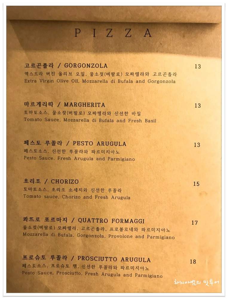 제 입맛에는 마르게리따가 제일 괜찮더라구요