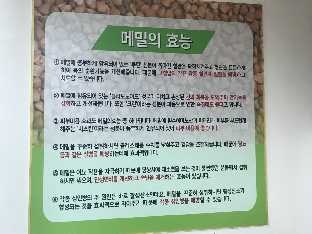 맛있게 먹고 내려오는길에 메밀의 효능도 한번 읽어봅니다.