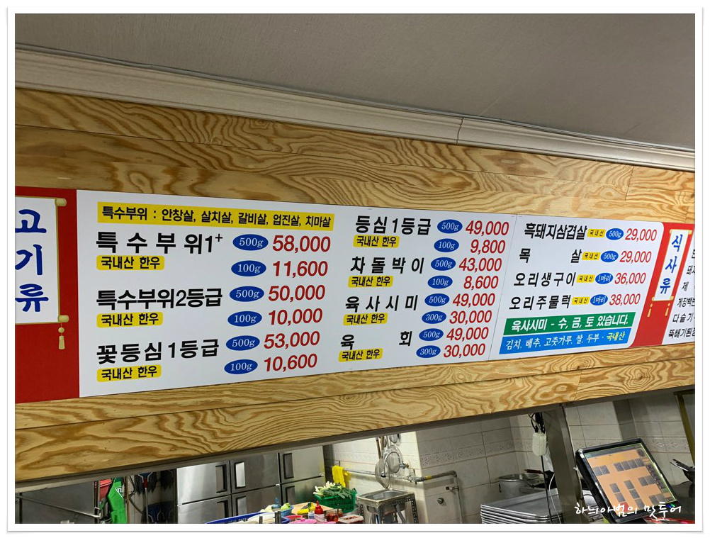 특수부위(1+/500g): 58,000