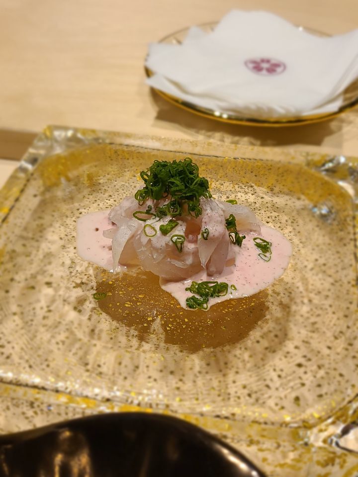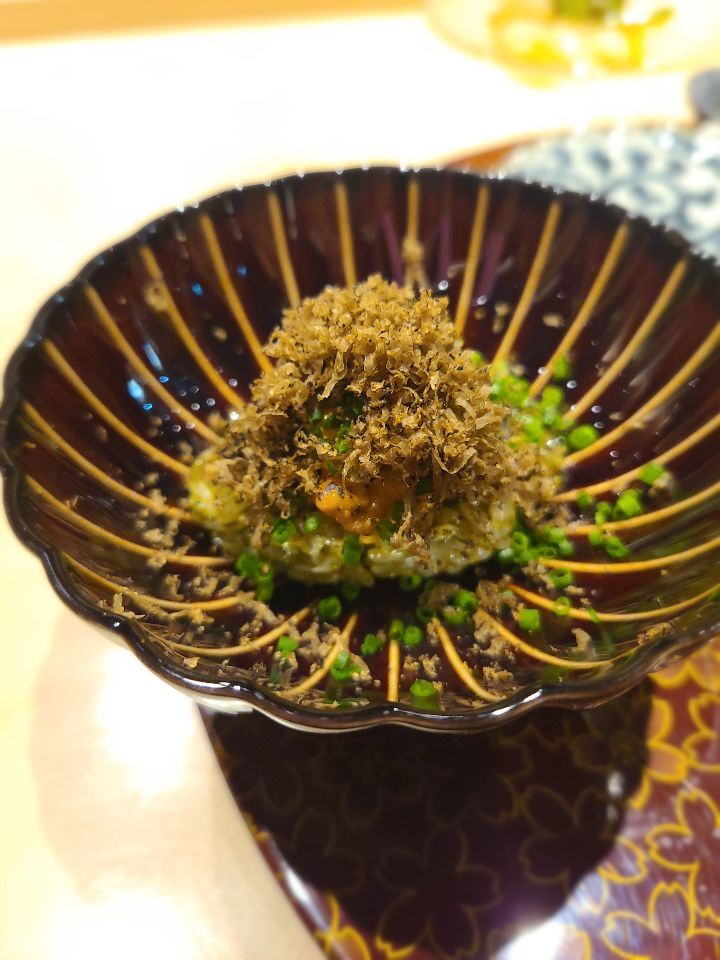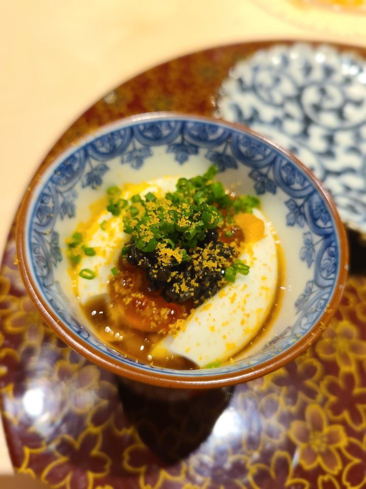 시그니처?인 다섯가지알(성게,캐비어,연어알,반숙달걀,어란에 약간의 육수와 실파) - 자본주의의 맛이네요