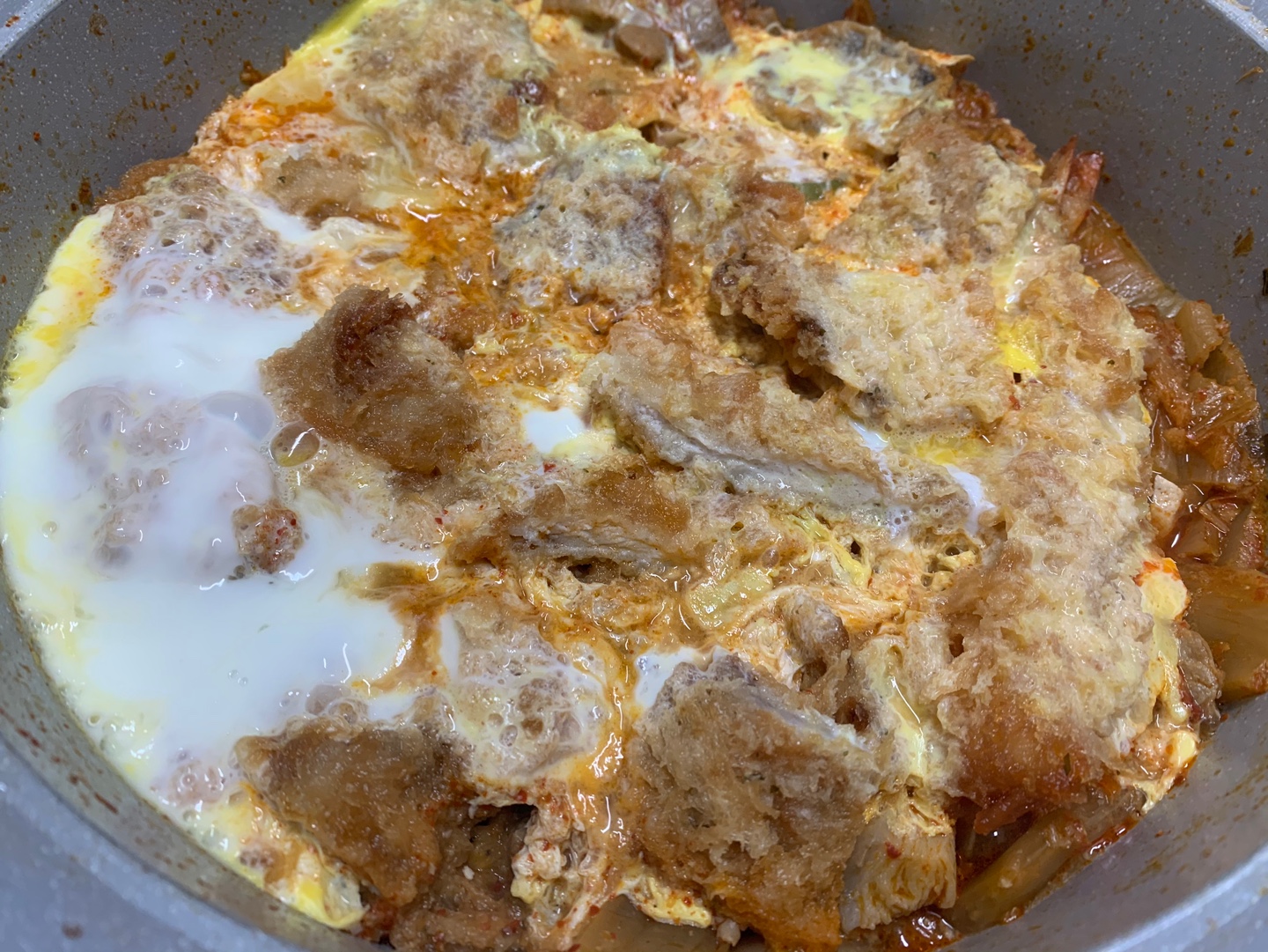 김치찌개와 가츠동을 믹스해서 만들었습니다..
