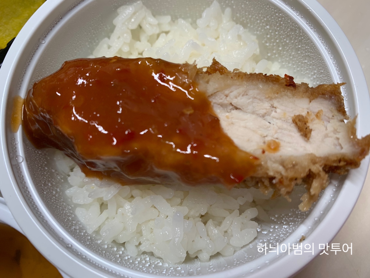 그냥 등심돈까스도 매운쏘스에 찍어 먹으면 맛있어요~~