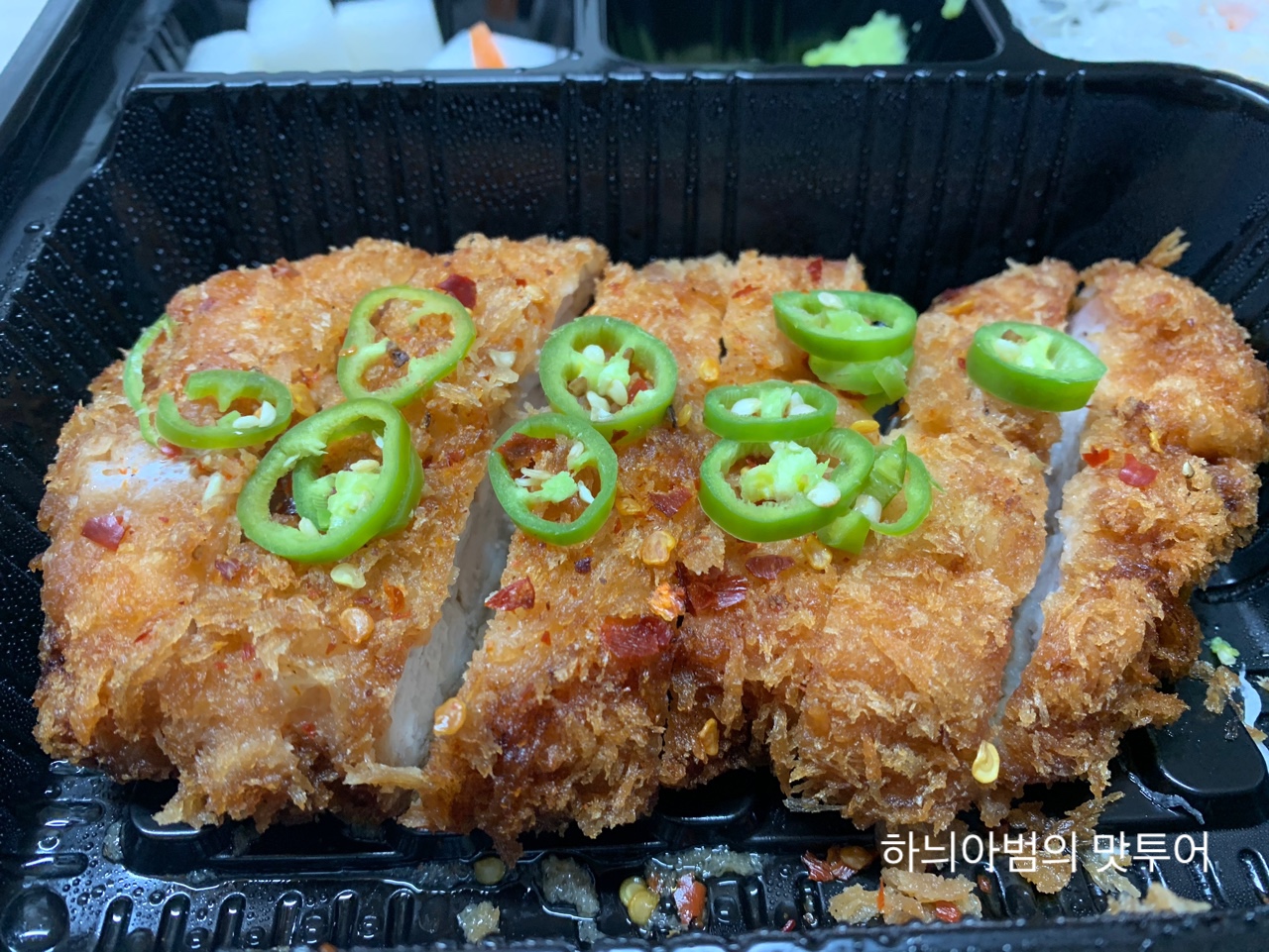 매운 등심돈까스에는 청양고추가 올려져 있고~~