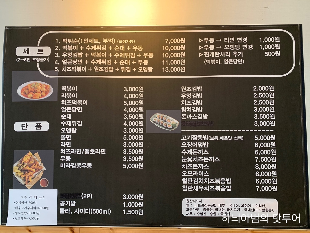 치즈볶음밥 떡볶이 순대 수제비 김밥 등