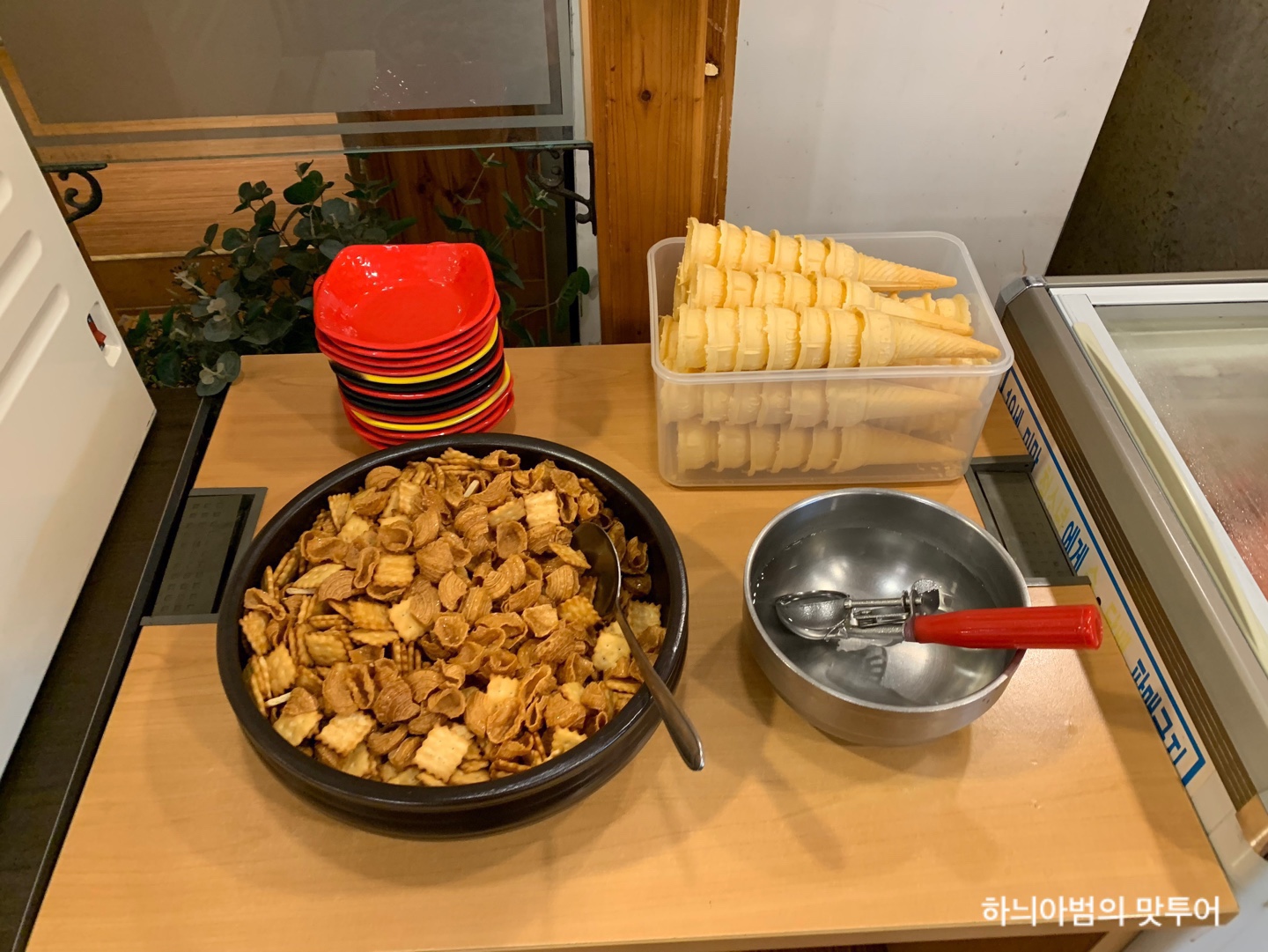 후식코너에 있는 과자와 아이스크림으로 마무리~~