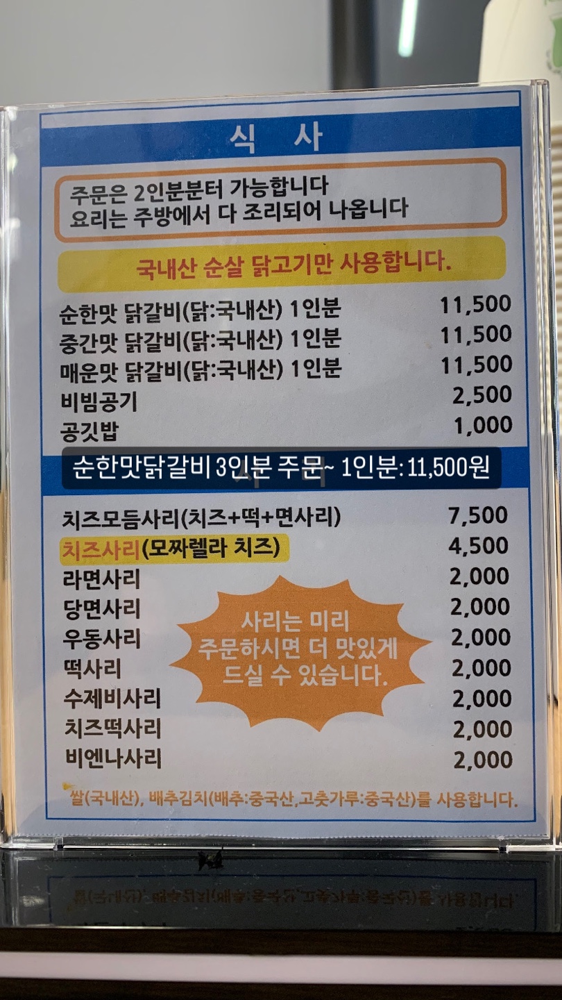 순한맛 닭갈비 3인분 주문했어요~~