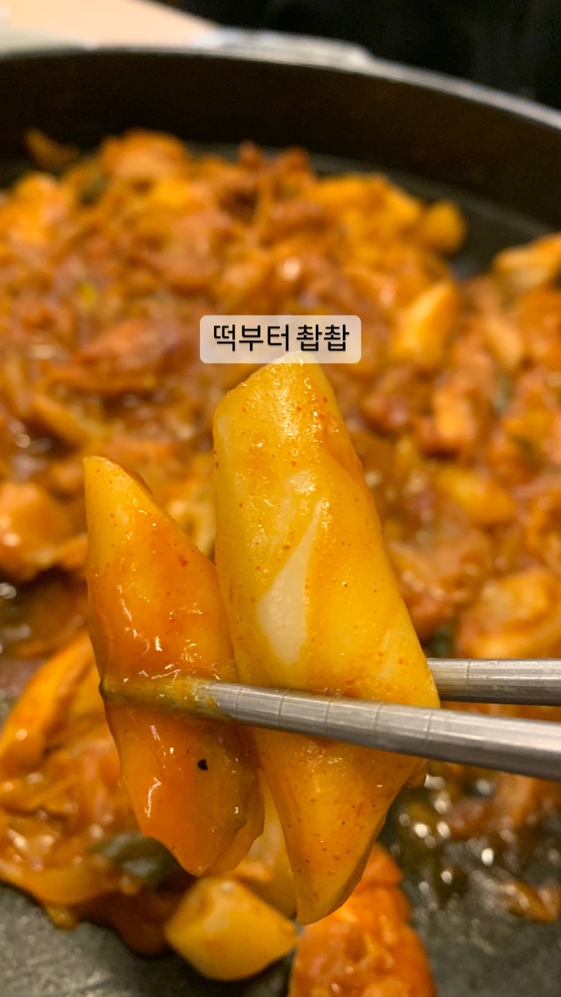 떡부터 한입~ 역시 닭갈비에 들어간 떡은 맛있고요~~