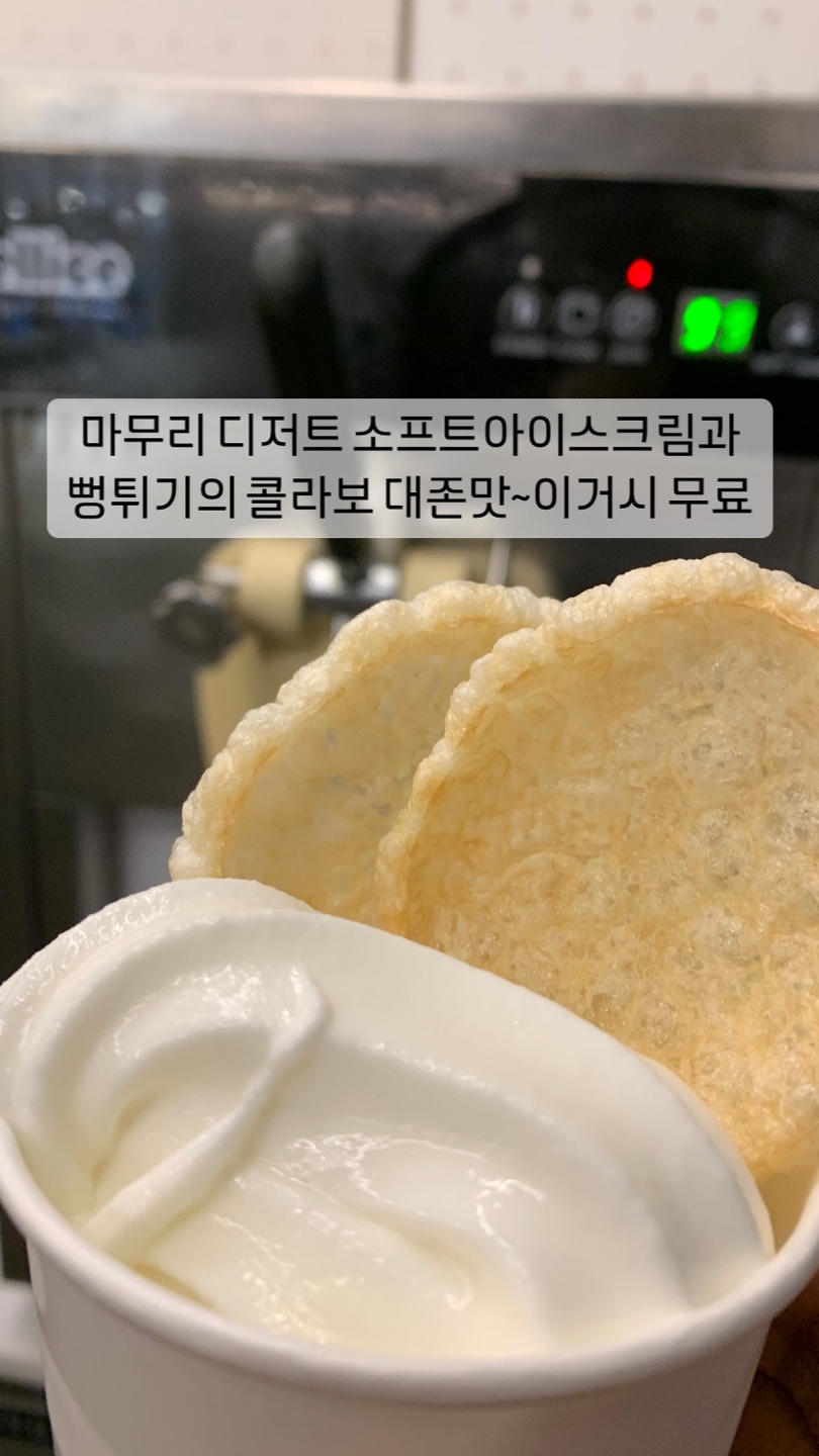 소프트아이스크림과 미니뻥튀기 찍어