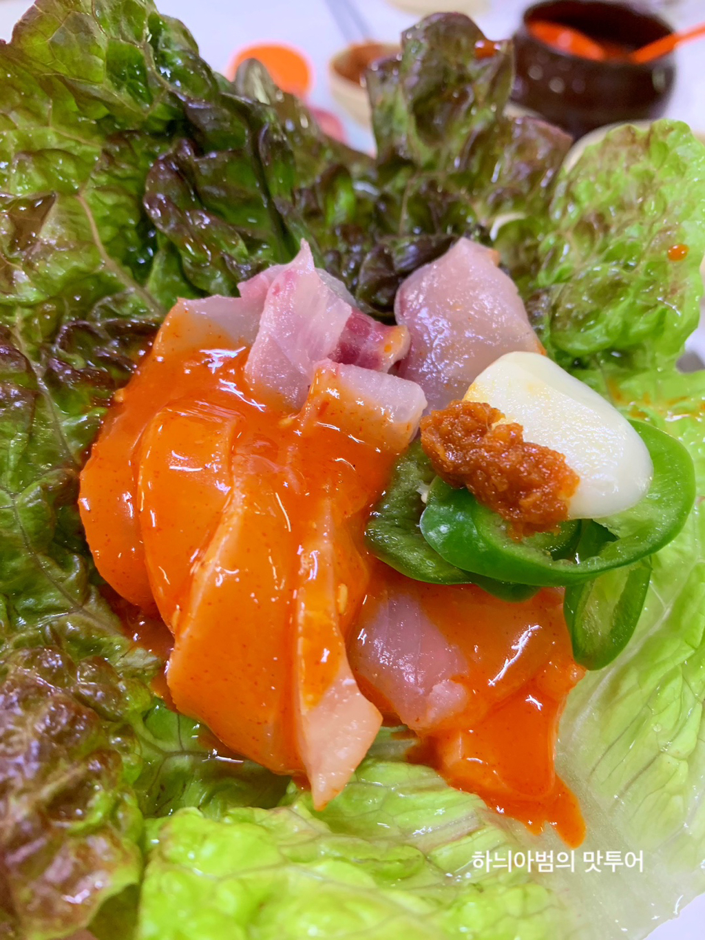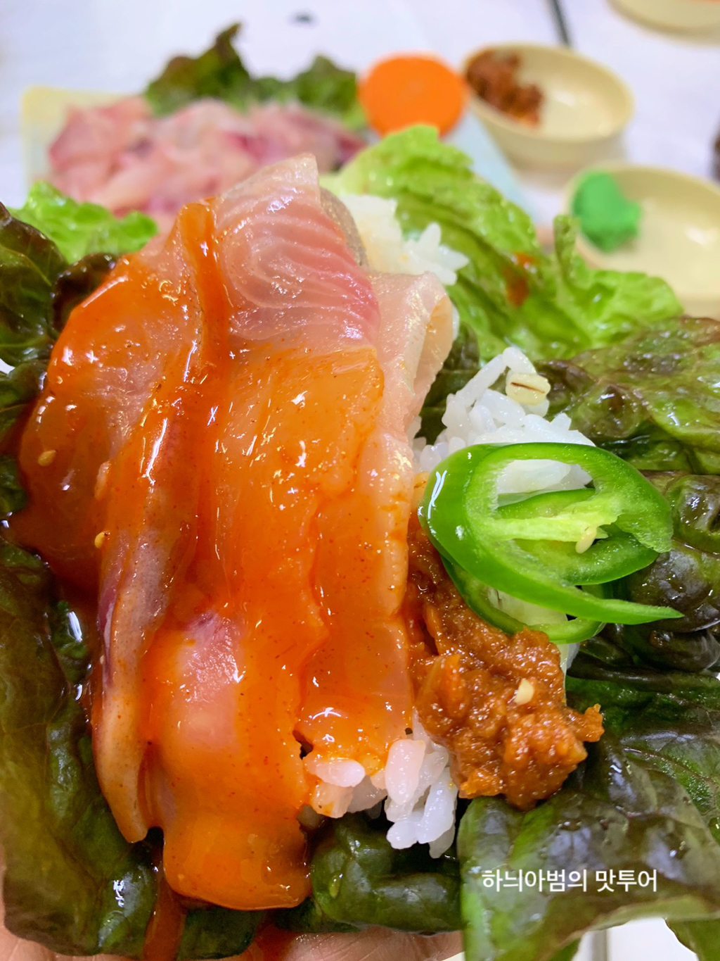 상추에 향어회랑 밥 얹어 같이 싸먹으면 더 맛있어요~