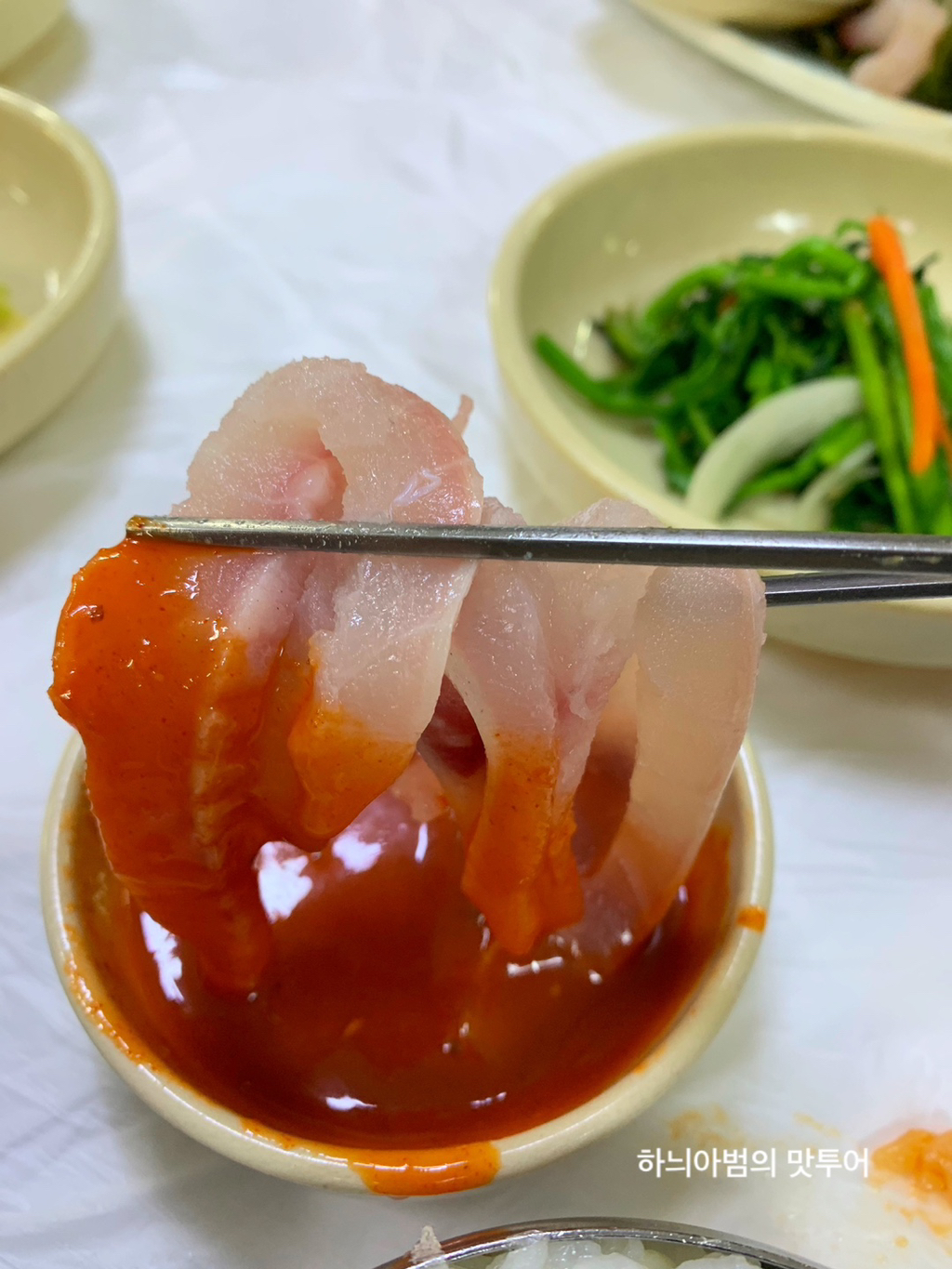 초장하고 향어회만 넣고 밥비벼 먹어도 맛있습니다~