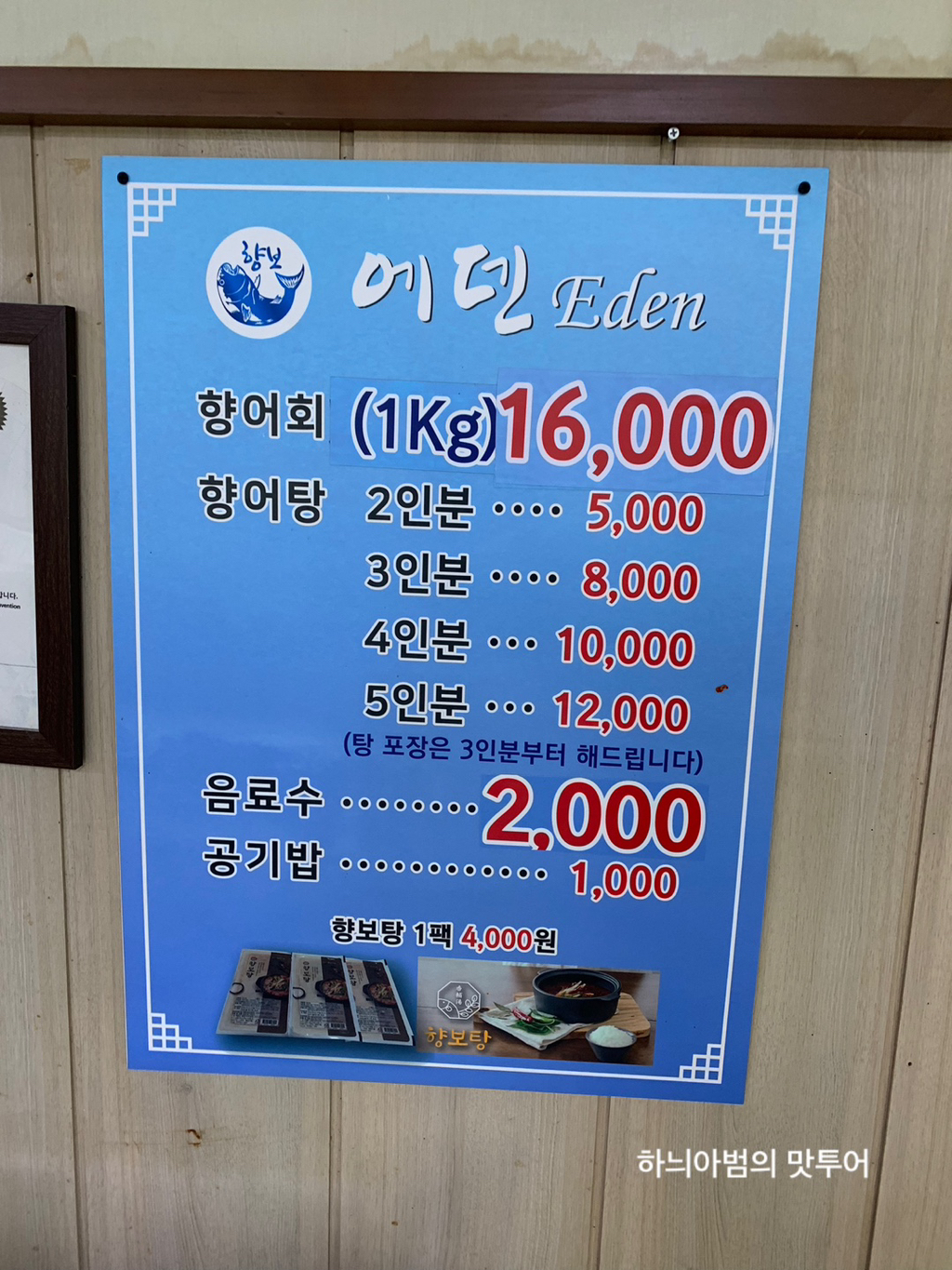 •향어탕(2인분): 5,000