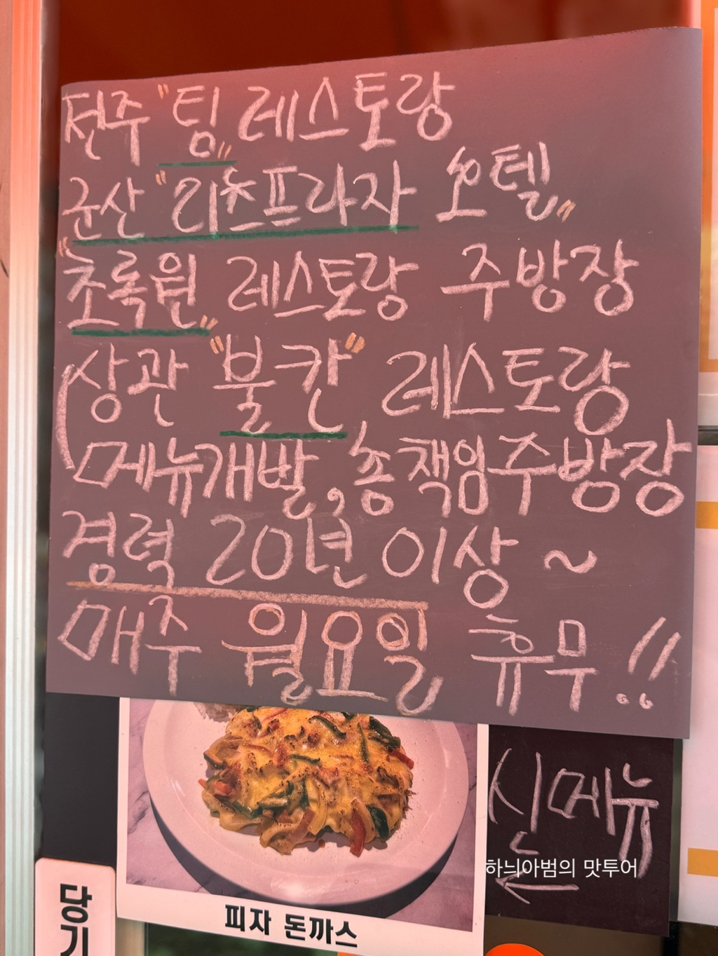 사장님 레스토랑 경력 20년이상으로