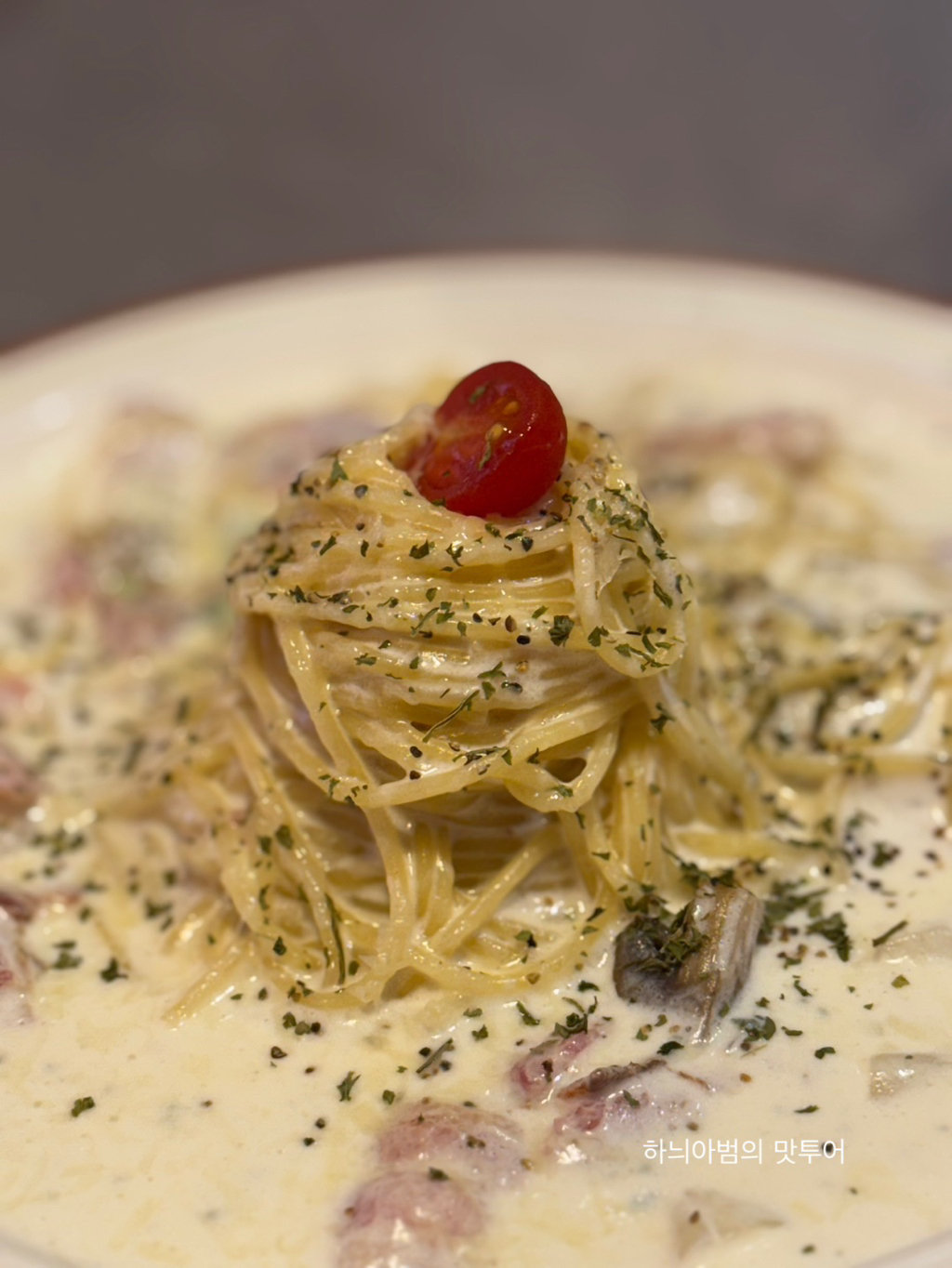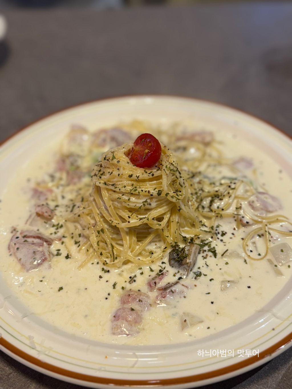 크림쏘스와 파스타면 잘 어우러져 맛있네요~