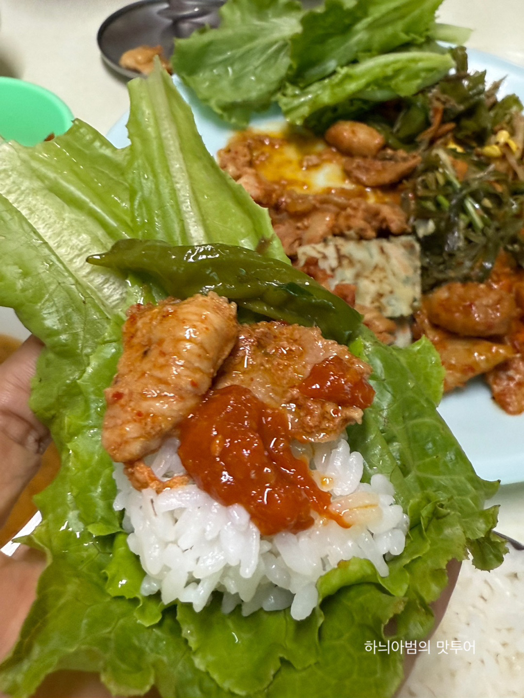 제육볶음은 상추에 맛있게 쌈싸먹고