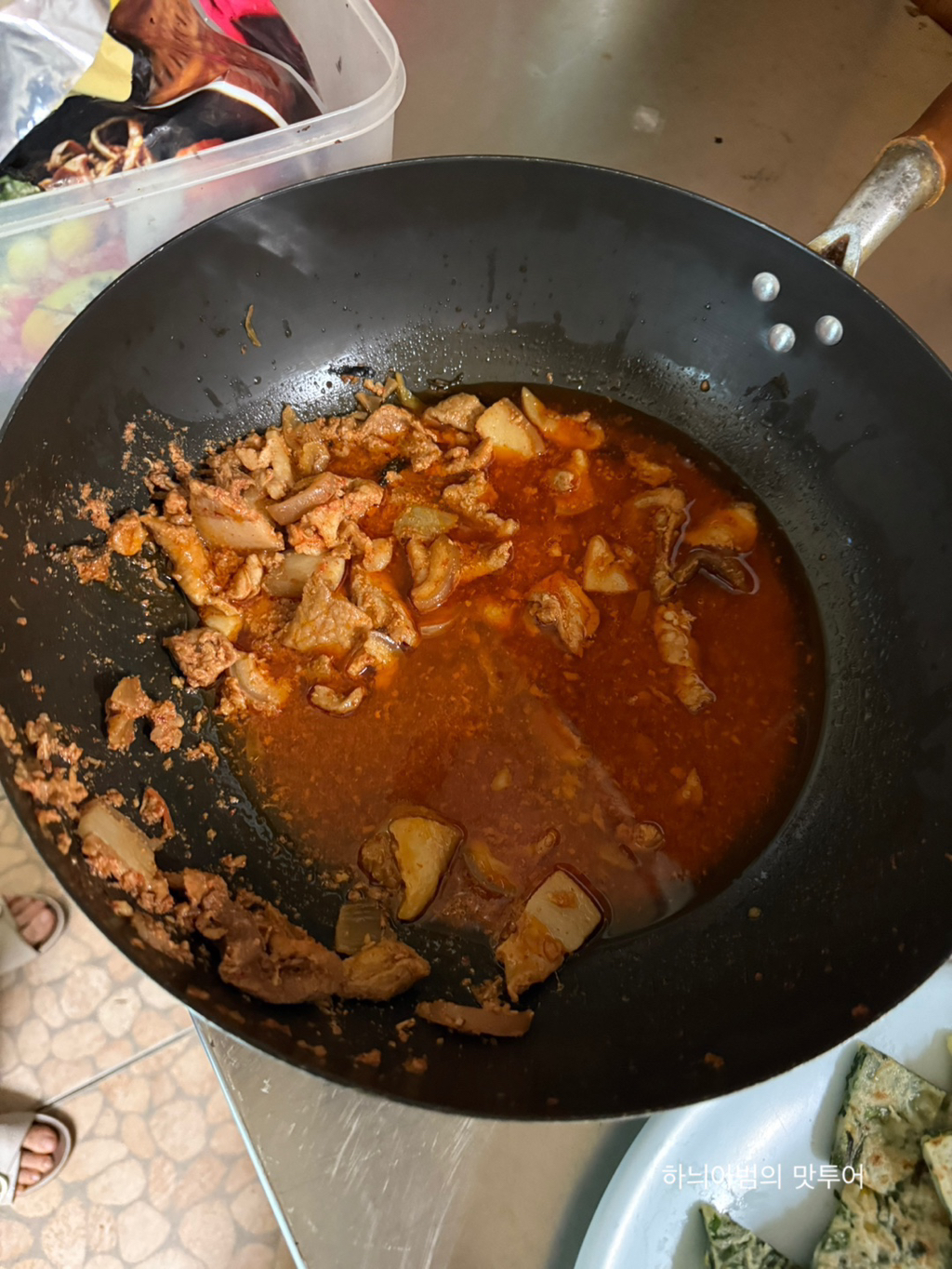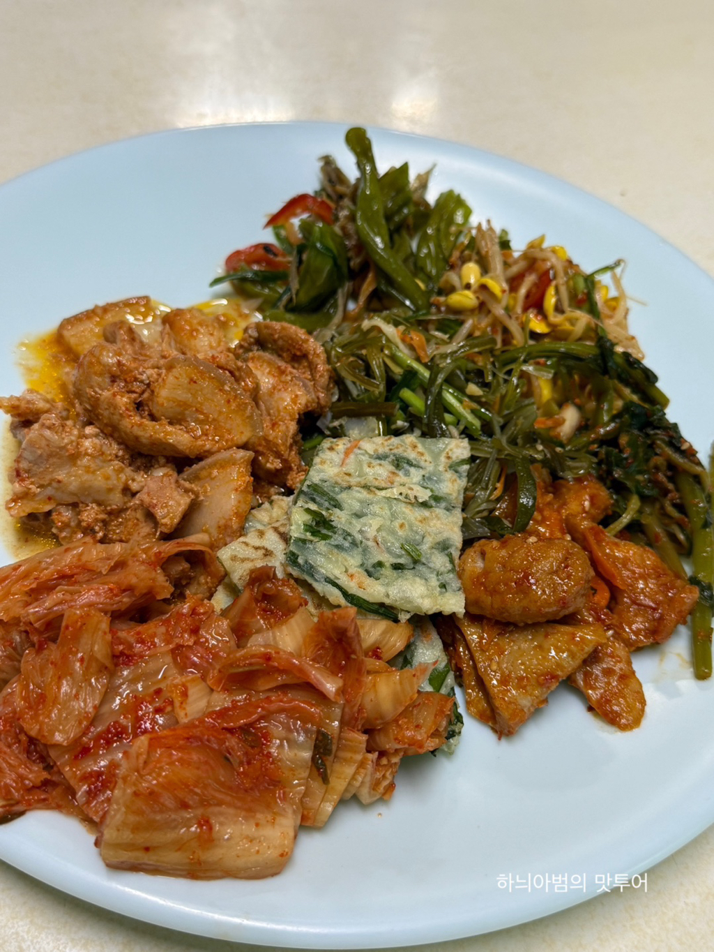 제육볶음 오뎅 열무김치 배추김치 냉국 고추조림