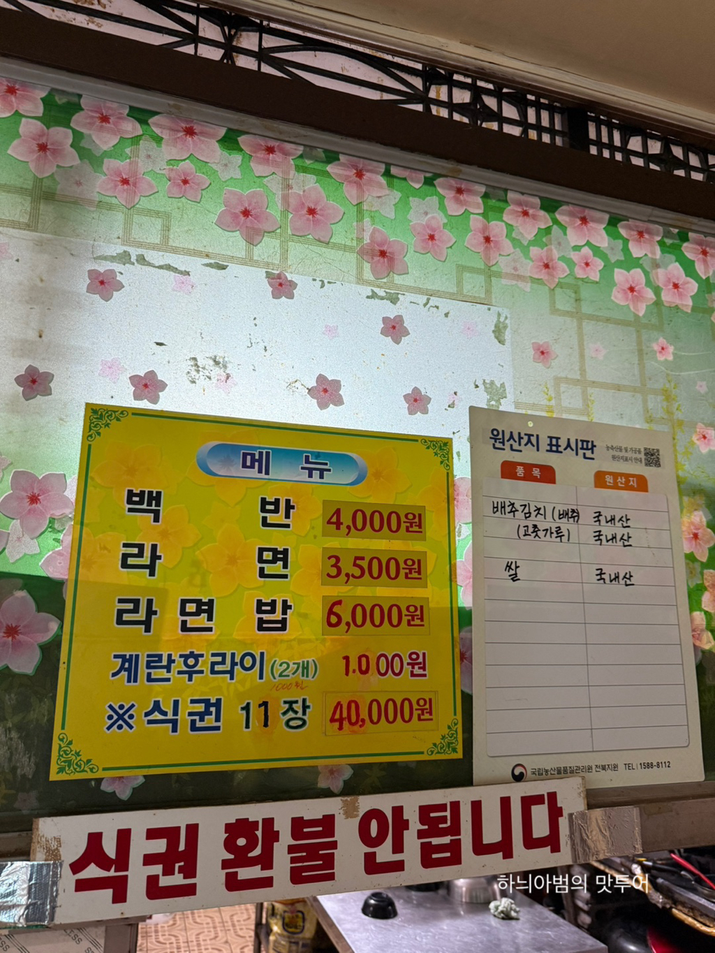 백반은 4,000원 백반+라면은 6,000원 입니다~