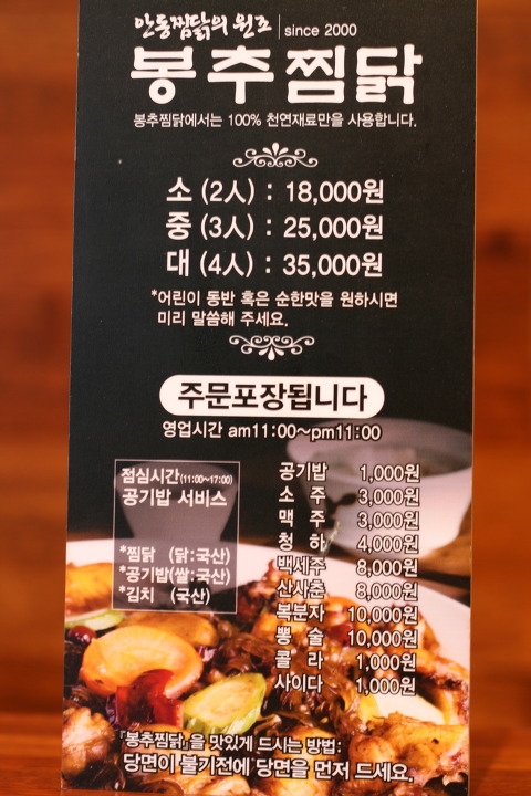 찜닭이냐 깐쇼새우 고민하는데 와이프가 찜닭이 더 땡긴다고 해서 간 봉추입니다!