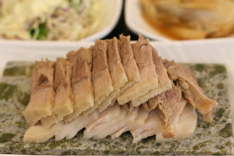 옥돌 위에 놓여진 따끈한 보쌈, 살코기와 비계부분이 적절한 조화로 등장!!