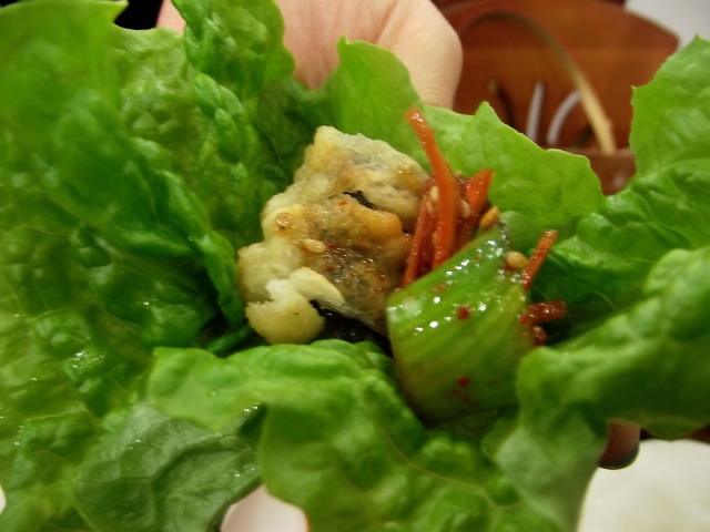 왜 튀김을 상추에 싸먹는가?? 상추는 꼬기랑 먹는건데~~~ㅋ
