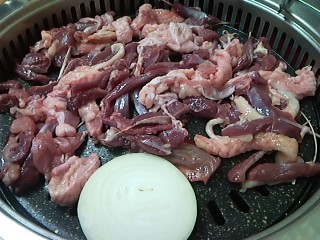 고기는 익으니까 닭보다는 좀 질긴맛?