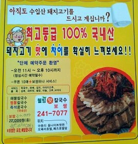| 메뉴/가격 | 해물칼국수 6.000원 / 보쌈 (중) 30.000원 |