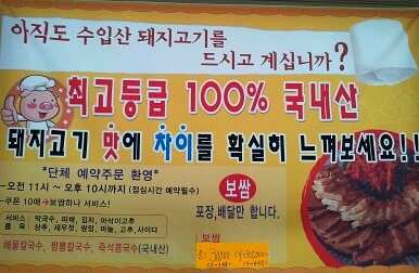 바로 최고급 암컷 돼지만을 고집하여 못먹었던 두터운 비지(?)까지도 먹을 수 있었던 바로 그 메뉴 "보쌈"