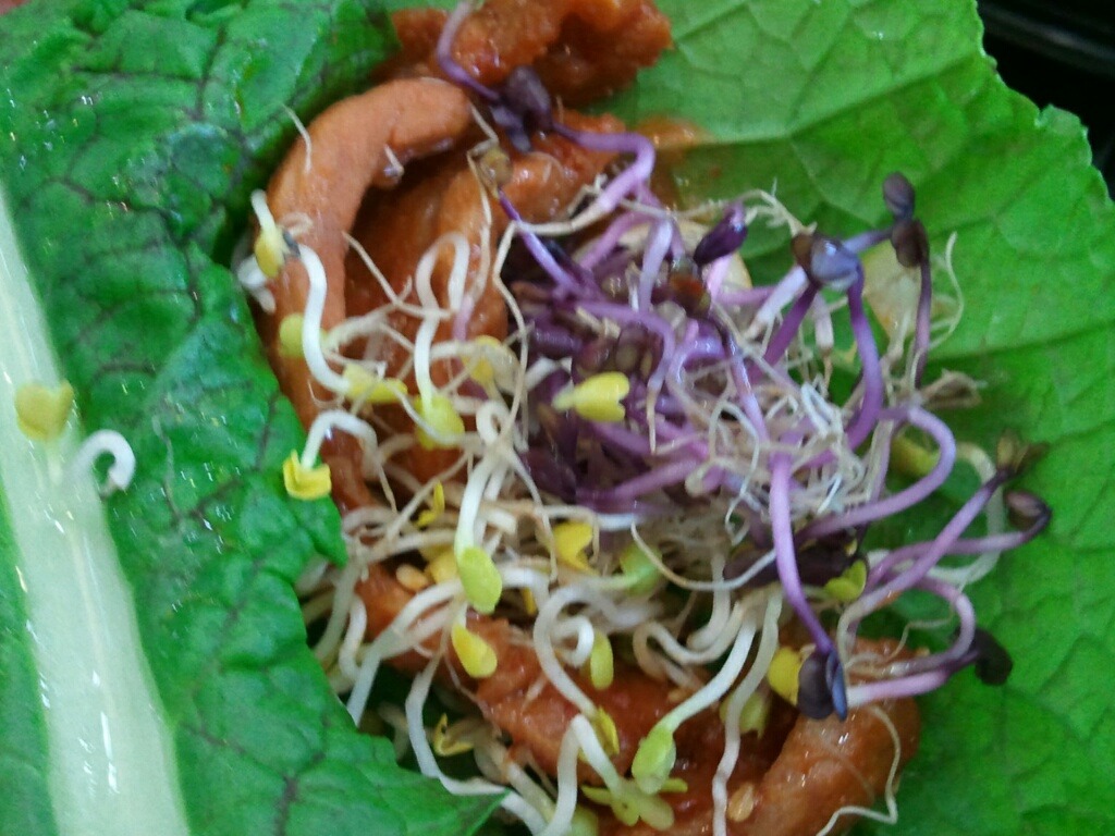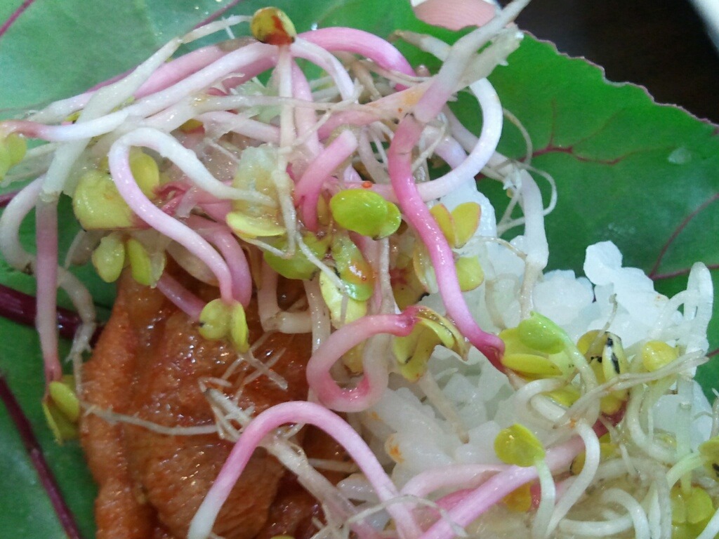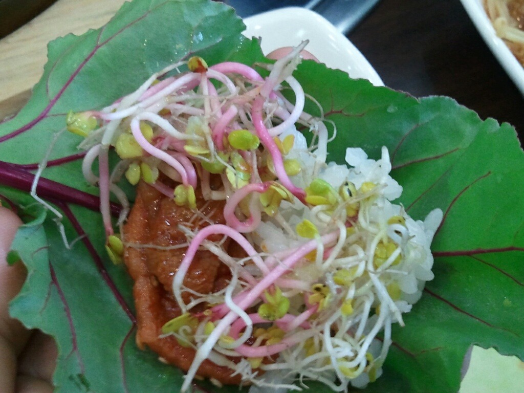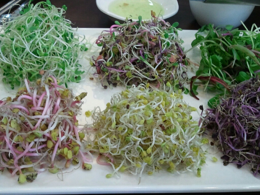 개업 직후 가 본 후 간만에 가보았더니 손님이 더 많아진것 같군요.새싹 메뉴를 여성분들이 좋아해서인지,여성 손님이 거즘 이더군요.양이 푸짐한 편이라,,오늘도 남기 듯 하였지요.새싹으로 쌈을 싸 먹다 보니,왠지 건강식 한다는 기분이 들지요.
